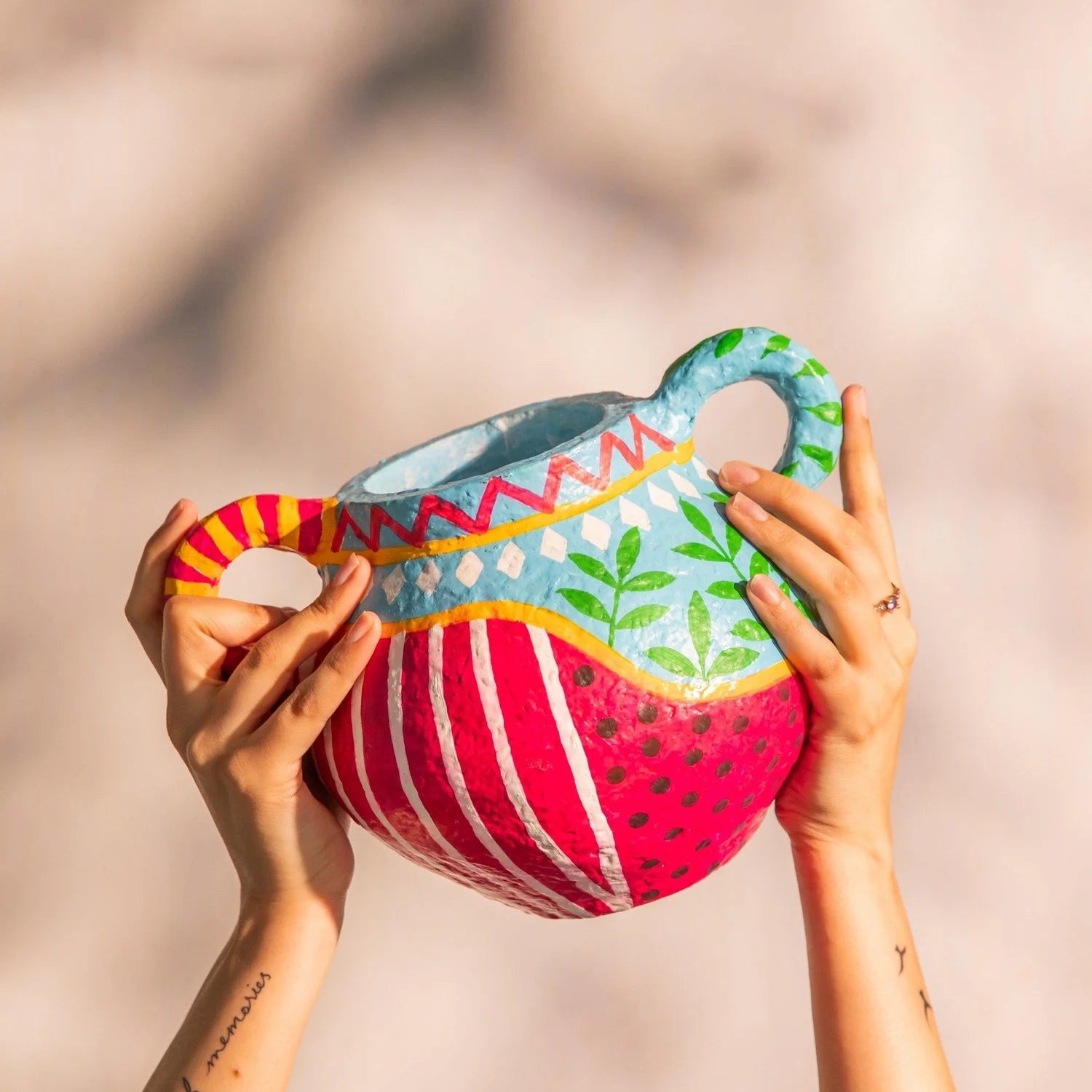 Bloom Handpainted Paper Mache Vase with Handle